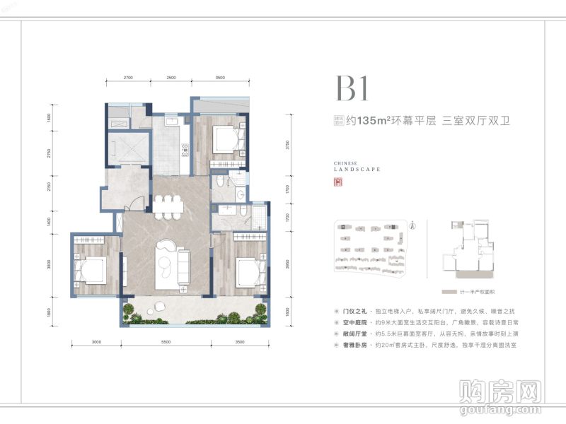 綠城鳳棲鷺鳴B1戶型(3室2廳,135平,東)