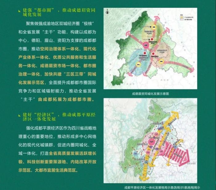 首先是三步走的戰略目標,到2025年,成都將基本建成踐行新發展理念的公園城市示范區。到2035年,高水平實現社會主義現代化,世界文化名城影響力顯著提升,成為具有國際影響力的活躍增長極和強勁動力源,成為國際門戶樞紐城市。到2050年,建成泛歐泛亞區域性的經濟中心、科技創新中心、金融中心、貿易中心、文化中心,成為充分體現中國特色、時代特征、成都特質的可持續發展世界城市。成都將成為“五中心一樞紐”,建設全國重要的經濟中心、全國重要的科技中心、全國重要的金融中心、全國重要的文創中心、全國重要的對外交往中心和國際性綜合交通通信樞紐。