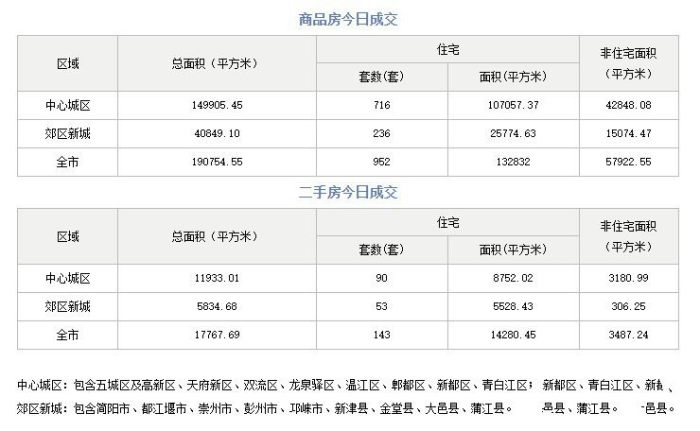 截至2021年7月14日17:40分,成都市全市商品房成交(備案)總面積190754.55平方米,其中其中商品住宅成交(備案)952套,商品住宅成交(備案)面積132832平方米。